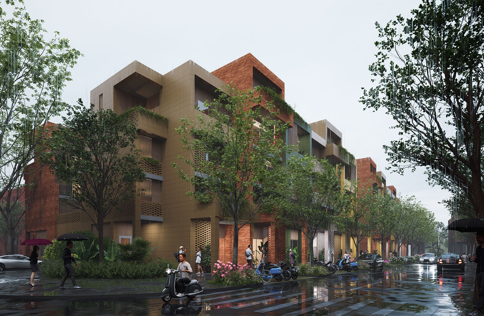 Material selection is central to achieving the project’s ambitious sustainability targets. All materials are assessed based on climate impact, local availability, buildability, cost, and cultural acceptance, as well as long-term maintenance and market value. The palette includes timber, brick, terracotta, and bamboo, with a strong focus on circularity—utilizing reclaimed bricks from local demolition and reducing cement use by incorporating by-products from regional industrial production.