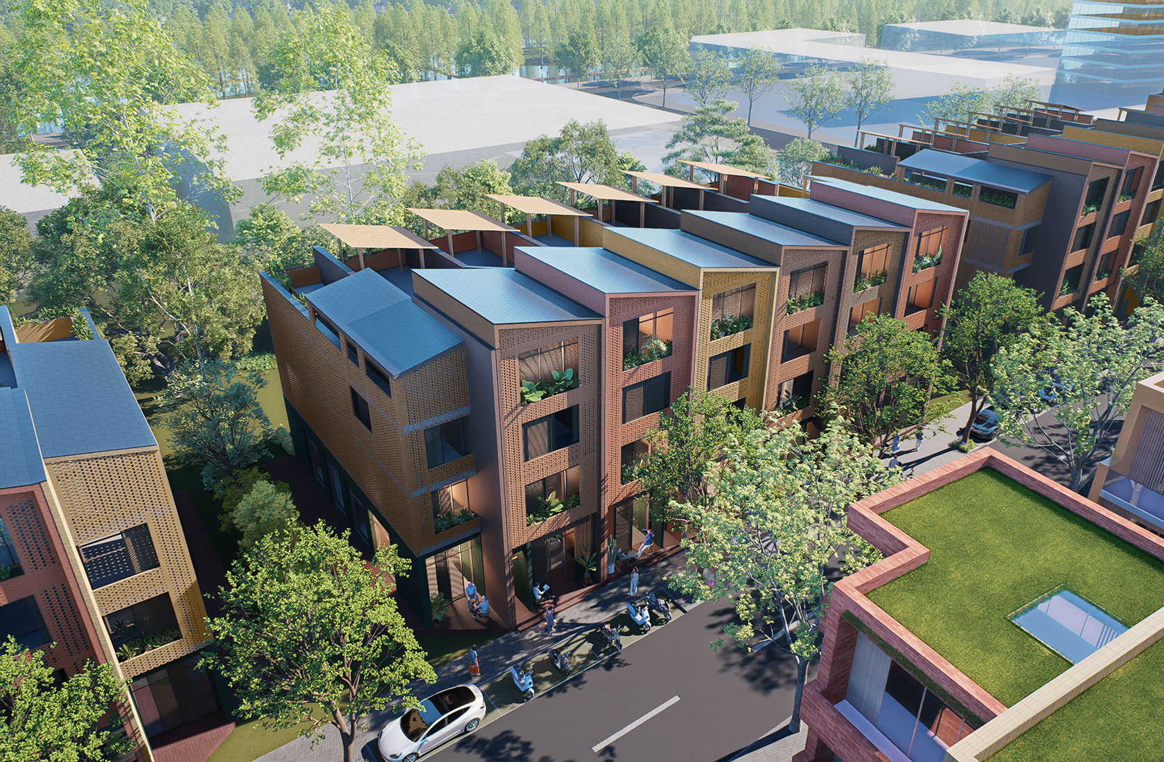 Drawing inspiration from Vietnam’s rich architectural heritage, a diverse range of design concepts foster a dynamic and vibrant urban environment. The master plan features 600 terraced townhouses and villas of varying scales, including units with ground-floor retail space. At the heart of the community, a design exhibition center provides a dedicated hub for meetings, events, and workplaces.