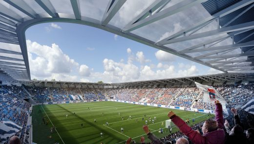 A challenge in designing sports facilities is catering for all functionality that sport requires. Measurements, such as the curves of the running tracks, must be precise and aspects such as sight lines and camera locations must be considered, so that the audience can take fully part in what’s going on.