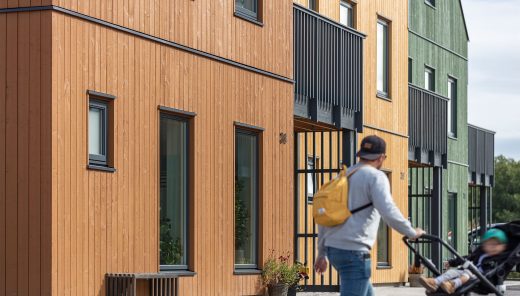 In the outskirts of Gothenburg a new residential area has emerged, on former shipyard territory. Here, small lush parks coexist with innovative and sustainable housing.