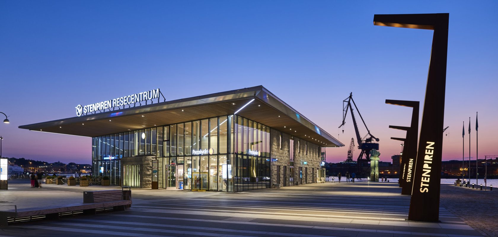 Stenpiren travel centre is situated at Skeppsbron in Gothenburg. It is an area that was previously dark and unused but which is now seething with life in renovated blocks, streets, squares, and quayside promenades with jetties and piers.