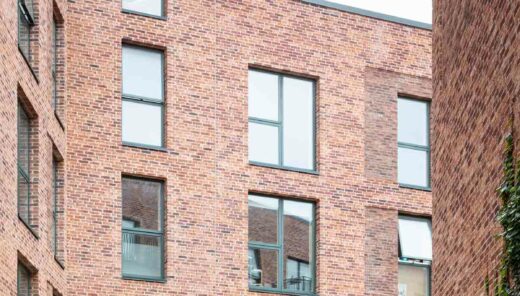 The Brickyard is a new courtyard block with 149 residences that are part of the new Stigsborg district in Aalborg, Denmark. The project includes two, three, and four-room apartments as well as a five-room penthouse apartment with a private roof terrace. The aim has been to create a lively and community-oriented building that contributes to the district’s dynamic atmosphere.