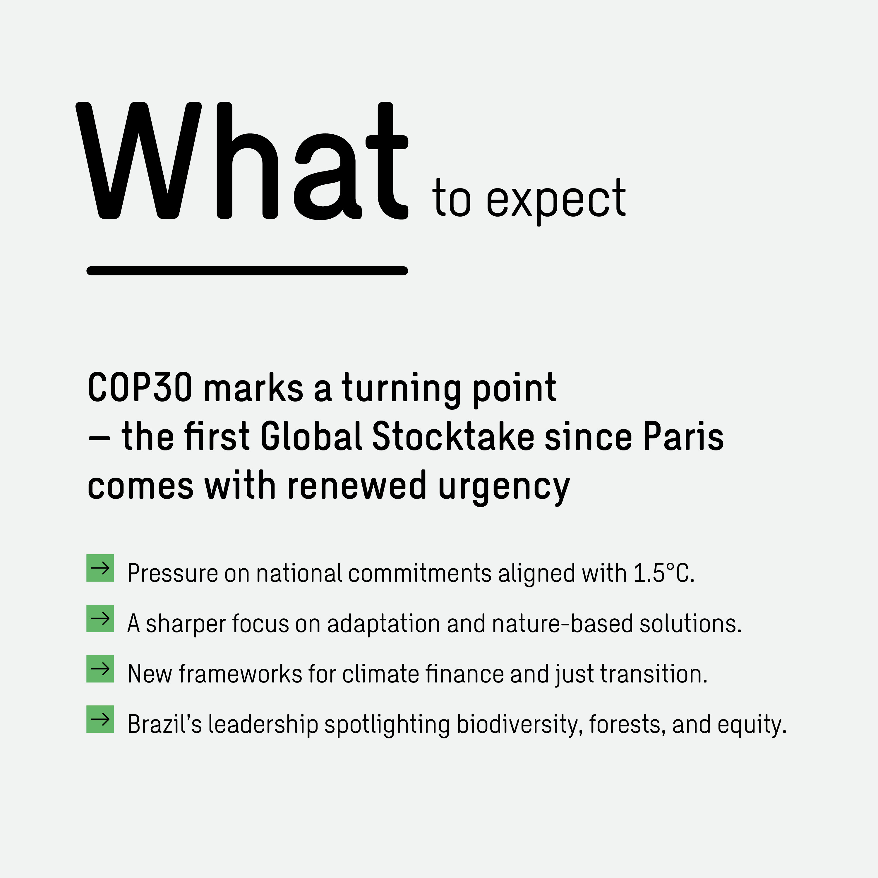 The delegates will gather after a truly turbulent year in global development. Multiple crises, increasing nationalism, rising conflicts and quite many steps away from the world order we knew – where international cooperation has been the norm back since the aftermath of World War II. The US has applied for leaving the Paris Agreement and the exit will be ratified in January 2026. So, formally still being a signatory there’s been a lot of uncertainty whether they would still show up for the COP30. We just recently received notice that the US will not send a formal negotiating delegation. However, the US will be well represented through progressive states, cities and businesses that have high stakes in climate matters.